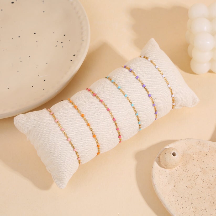 Bracelet doré coloré pastel.Tous nos produits sont fabriqués en acier inoxydable, un matériel qui résiste à l'eau et ne se rouille pas dans le temps. Ils sont garantis sans nickel, sans cadmium et sans plomb.